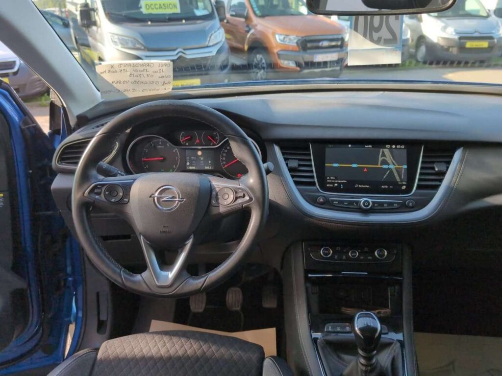 Opel Grandland X 1.2 130cv bleu du 16/07/2019 avec 125605km, 1er propriètaire avec suivi, Climatisation, GPS, Régulateur et limiteur de vitesse, Capteurs d'aide au stationnement avant et arrière, Détecteurs de lumière et de pluie, Caméra de recul, Radio, Bluetooth…