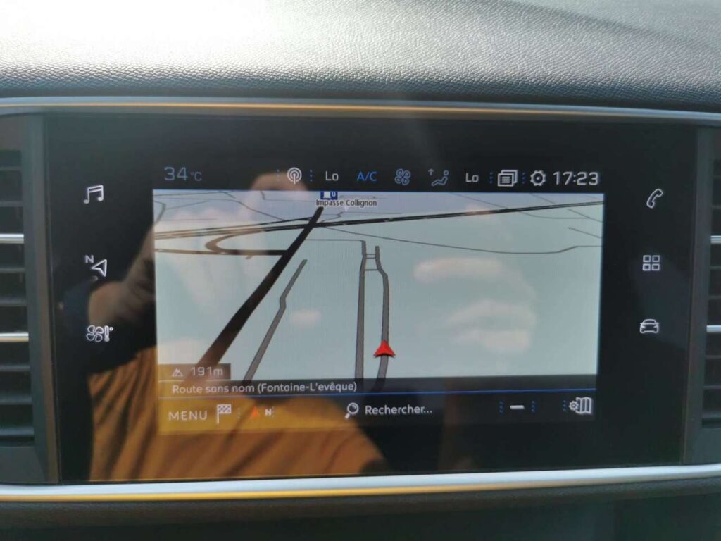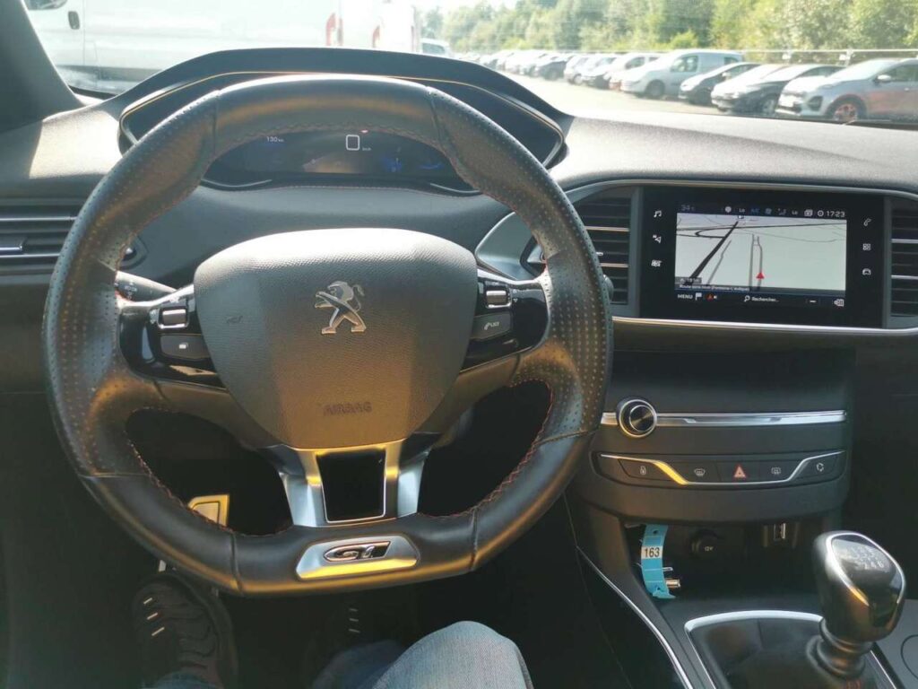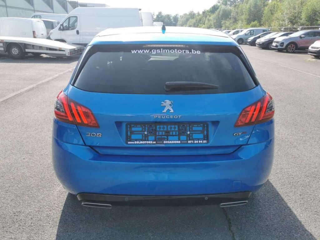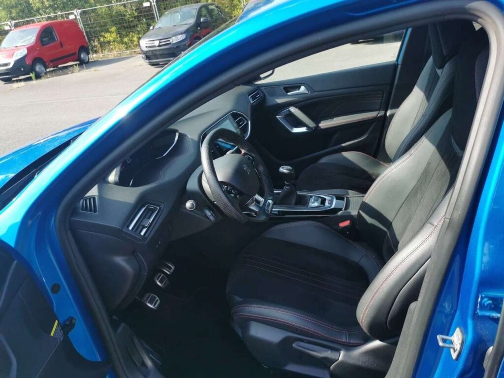 Peugeot 308 1.2 130cv GT LINE bleu métal 5 portes du 23/06/2021 avec 105.770km, Climatisation, GPS, Capteurs d'aide au stationnement avant et arriére, Régulateur et limiteur de vitesse, Détecteurs de lumiére et de pluie, Alerte sortie de voie involontaire, Alerte attention conducteur, Caméra de recul..